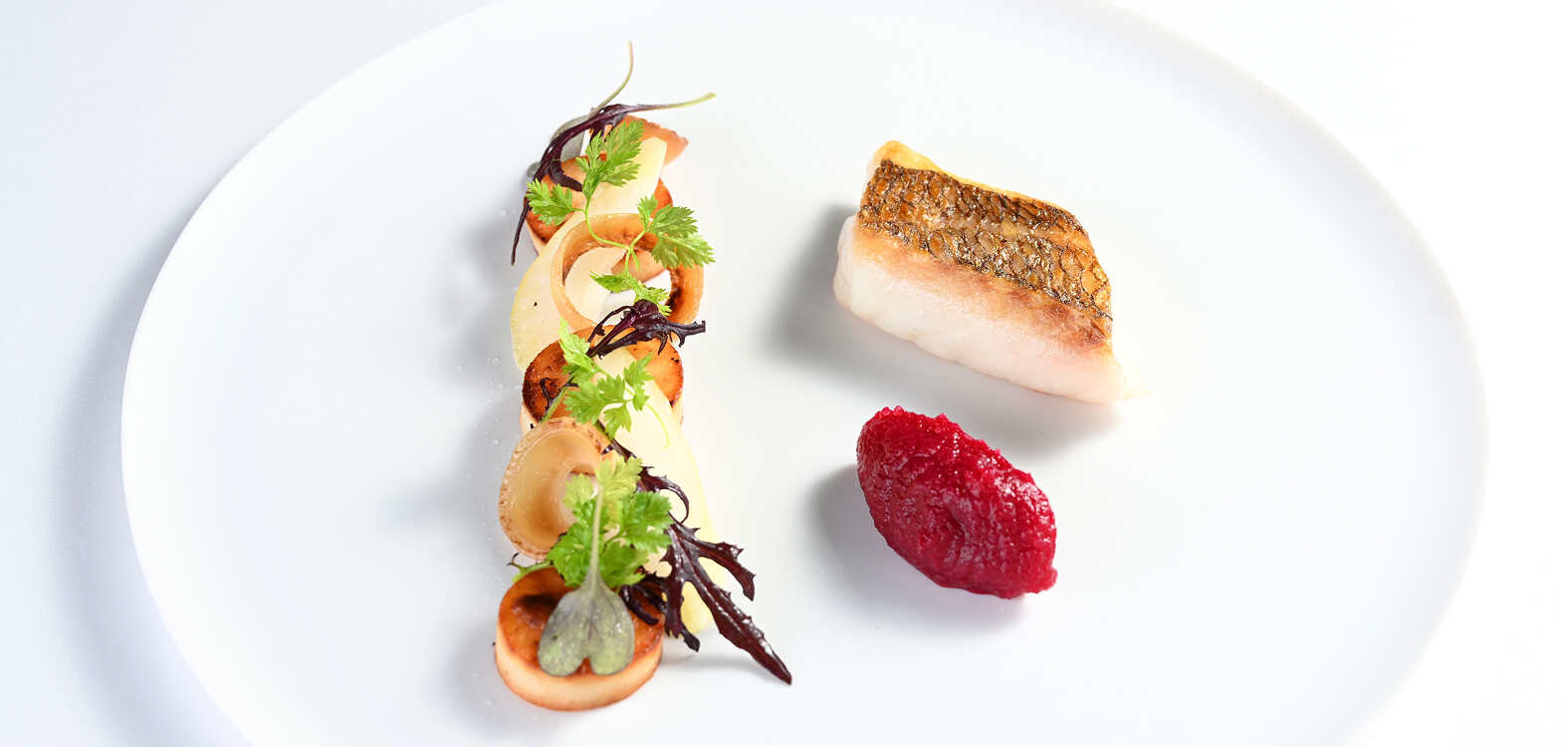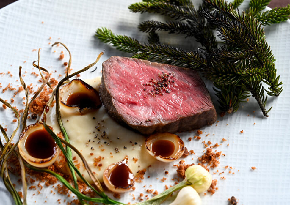 豊かな恵みをふんだんに加賀野菜などの地の素材、金沢港直送のとびきり新鮮な魚たち、能登牛など、季節の山海の幸をふんだんに加えて、ここ金沢ならではのフレンチを生み出しています。