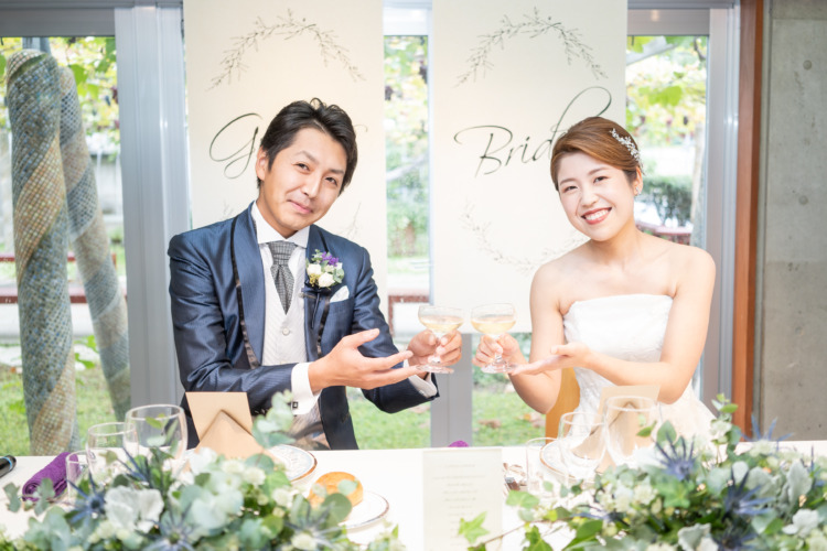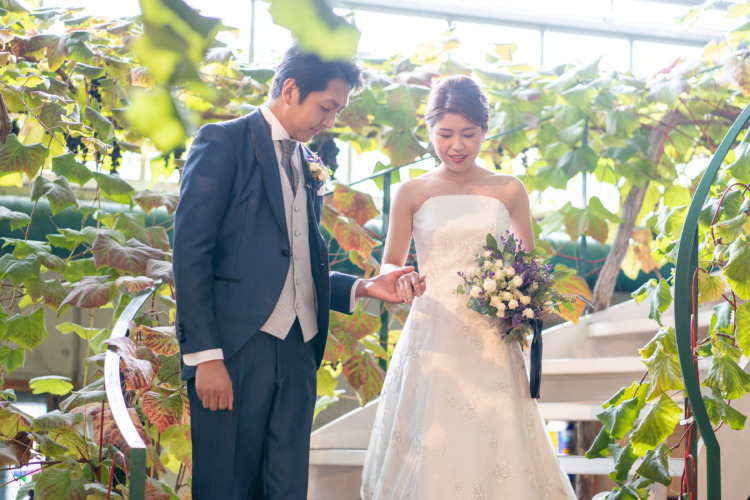 「ぶどうが一面に広がる珍しいロケーションがとても魅力的でした。"カジュアルに料理と会話が弾むようなアットホームな式にしたい!"というのが2人の理想でした。レストランウェディングということでかしこまらず、自分たちらしくゲストをもてなすことが出来そうだと感じたことも理由の1つです。