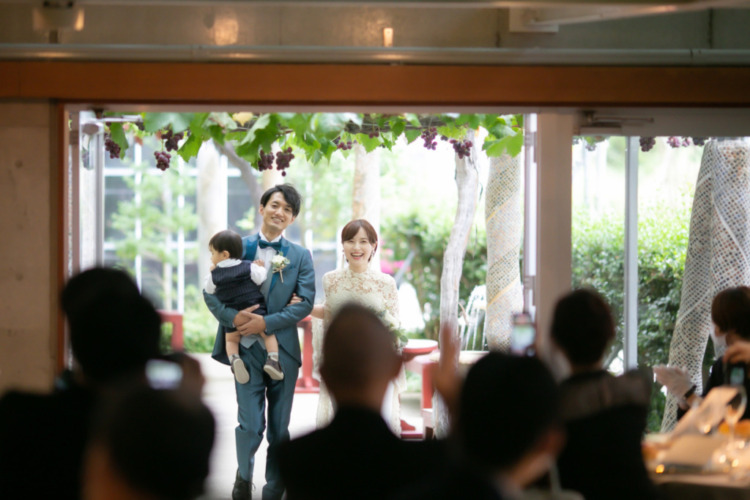 ご結婚おめでとうございます!親しいご親戚とご友人の皆様でアットホームな挙式とパーティとなりましたね。お子様もご一緒に今日の主役のお1人として皆様にお祝いされていらっしゃるお姿が、かわいくとっても素敵な空間となりました。またいつでもご家族皆様でぶどうの森へ遊びにいらしてくださいね。お待ちしております!