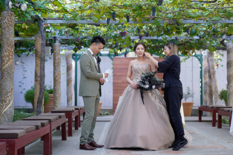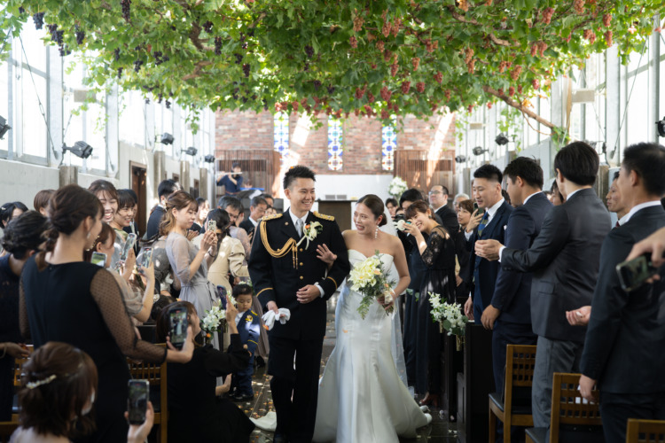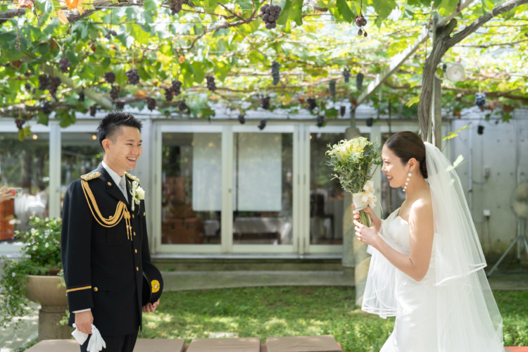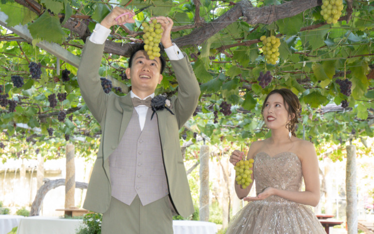 当日は緊張もありましたが、本当に楽しい時間であっという間の1日でした。写真を見返す度に楽しかったことを思い出し、ぶどうの森で結婚式を挙げることが出来てよかったです。頭上の葡萄がとても可愛く大好評でした。準備が大変で不安な事もありましたが、プランナーさんと打合せをしていく度に当日が楽しみになっていきました。毎回楽しい打合せで親身に寄り添ってくださったプランナーさん、準備をしてくださったスタッフさんに感謝しています。本当にありがとうございました。