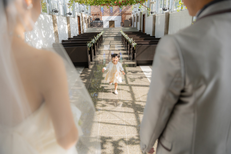 ご結婚おめでとうございます!お打ち合わせ時からとっても賑やかで楽しいお時間をありがとうございました!少人数ウェディングだからこそ、皆様との距離もより近くゆったりとお過ごしいただき、挙式から披露宴まで演出を沢山交え、和気藹々とした雰囲気でお食事の時間を楽しんでいらっしゃったのが印象的でした。特におふたりのお子様が当日のキューピットちゃんで大人気&大活躍でとっても可愛かったですね♡お衣装にピッタリのヘアカラー&スタイルでおふたりとも本当に素敵でした✧˖°またいつでもご家族皆様でケーキを買いに遊びにいらしてくださいね!(^^♪