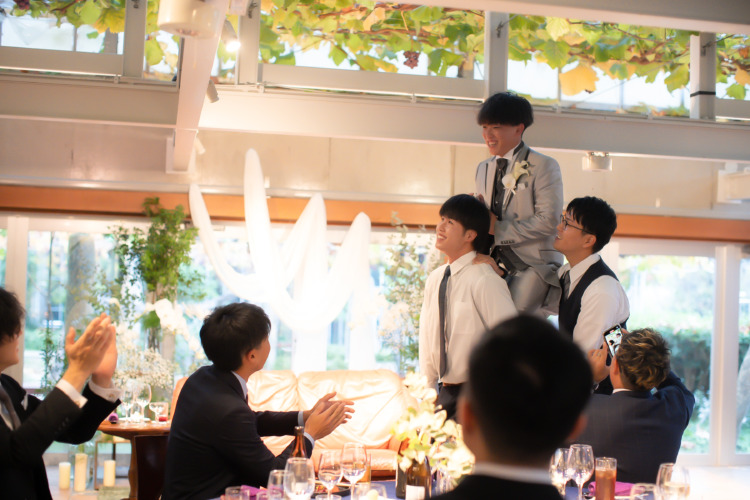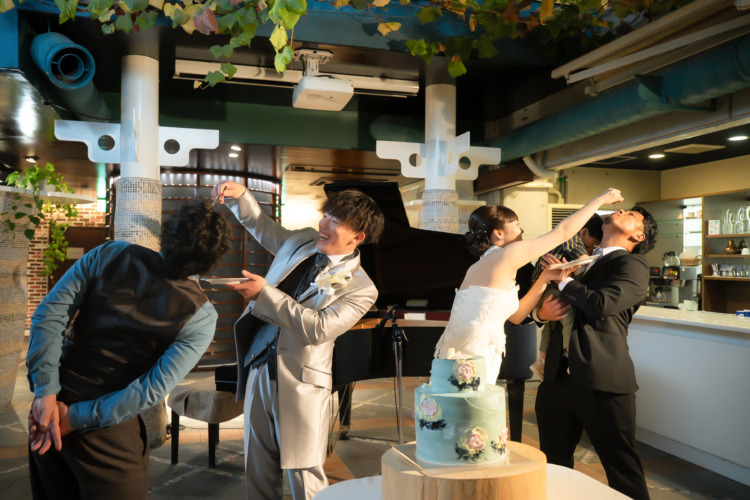 最初は親族のみで行おうと思っていたのですが、1人また1人と呼びたいゲストが増えて、最終的に友達も含めた式を開くことにしました。そのため、ゲストみんなが楽しめるようにブーケトスの代わりのバッティングトスや、くじ引きを使用したケーキバイト、サプライズのピアノ演奏などなど様々な場面で私たち2人だけでなくゲストの表情も楽しめる、とにかく盛り上がる式にしたところがこだわりポイントです!