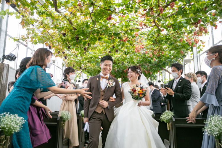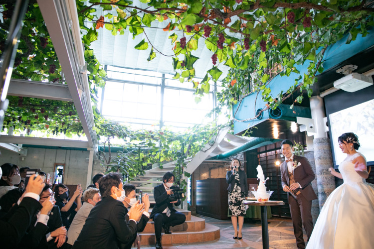 元々ナチュラルでアットホームな雰囲気の式場を探していました。いくつか式場を見ていく中で、ぶどうの木をHPで見たときに挙式会場・披露宴会場ともに室内にぶどうがなっていて綺麗だったので一目惚れしました。ここは他を探してもなかなかない!また、アットホームな式にしたいと思っていたのでここならできると思いました!