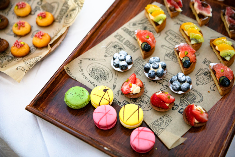 テーマはゲストが楽しめるような演出作りです。ゲストと近くで沢山話せるように高砂ソファやテーブルラウンド、デザートビュッフェを用意しました。また、バルーンリリースやスマホで撮影した写真をリアルタイムでスクリーンに映せる写真投稿などゲスト参加型の演出を盛り込みました! 加えて、ファーストバイトの演出が私の周りでは多かったので他であまり見ないフルーツポンチの演出をしました。見栄えがよくなるように色々試行錯誤して満足のいく演出になりました♪