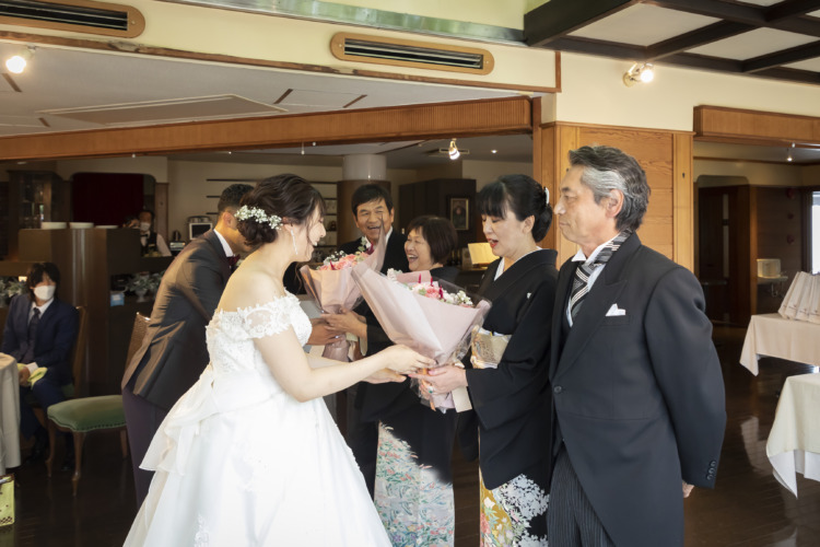 ご結婚おめでとうございます!!会場見学にお越し下さってから当日まであっという間でおふたりもおいそがしい中、準備等大変だった部分もあったかと思います。気配りが素晴らしくとても優しいおふたりに、私自身沢山支えていただき感謝の気持ちでいっぱいです。結婚式に対してあまり前向きなお気持ちではなかった時期もあったとのことですが、最後には「やって良かった」と最高のお言葉を頂けておふたりのお手伝いができ本当に良かったなと思っております。当日はおふたりのおもてなしでご家族との時間をゆっくり過ごされ、皆様にも楽しんでいただけたご様子でとても嬉しく思います。落ち着いたら是非ご家族3人で本店へ遊びにいらしてくださいね!(^^♪