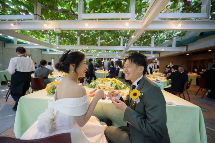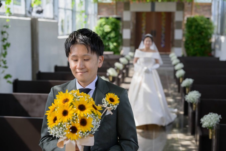 初デートではじめてぶどうの森に連れてきてもらった際に、あたり一面に広がるぶどう畑の光景に感動しました。 他のどこにもない、唯一無二なナチュラルの雰囲気がふたりともとても気に入り、迷うことなく会場を決めました。 また、私の父親がワイン好きなことを考慮して、きっと喜んでくれるだろうと主人が配慮してくれたことも、とても嬉しかったです。