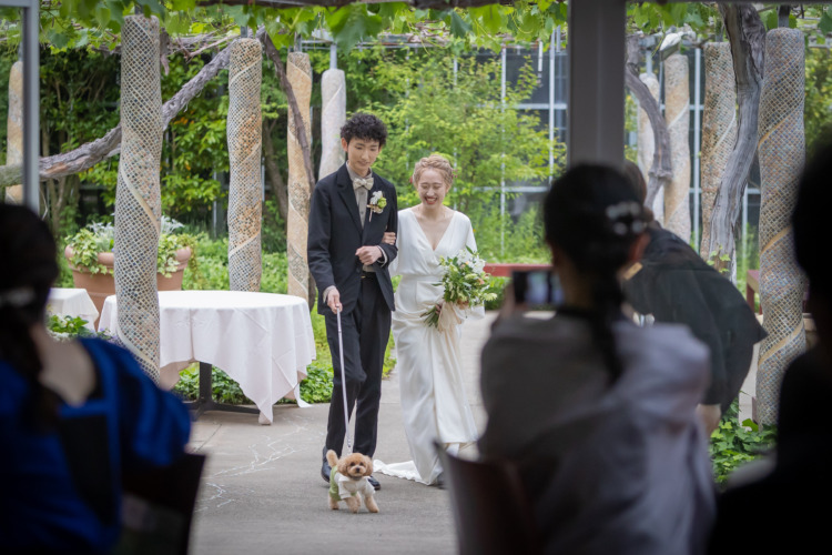リングドッグができる式場を探していたところ、チャペル・披露宴会場ともに、緑豊かで気取らない雰囲気のぶどうの森に惹かれました。また、担当プランナーさんがとても話しやすく、なんでも気さくに相談に乗って頂きました。アイデアもたくさん出して頂き、自分たちらしい結婚式を挙げられそう!と思いぶどうの森に決めさせて頂きました。