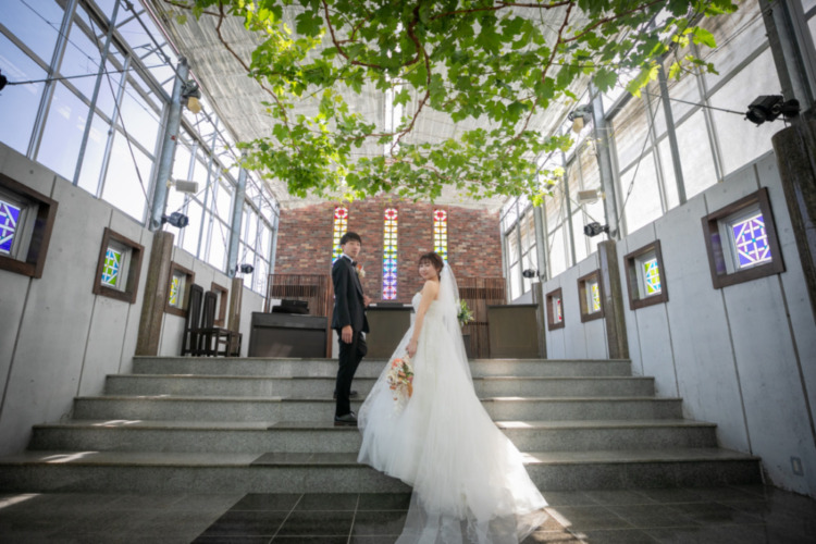 緑が溢れる場所で結婚式をしたいと考える中でぶとうの森さんを見つけました。見学させてもらったぶどうの木が彩る式場や披露宴会場がとても魅力的で、自分たちがイメージする会場にピッタリでした。また、ぶどうの森のプランナーさんやスタッフの皆様の温かさがとても素敵でぶどうの森で結婚式をしたいなと強く思いました。