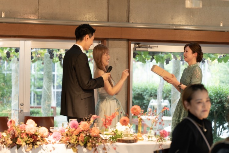 ゲストの皆様からあたたかい祝福の声をたくさんいただきとっても幸せな気持ちにさせてもらいました。結婚式をして良かったと心から思いました。大切な友人や親戚、家族の楽しそうな顔が見られたことが何より嬉しかったです。コロナ禍ということもあり不安もありましたが、ぶどうの森さんの心強い協力のおかげで素晴らしい日となりました。本当にありがとうございました。