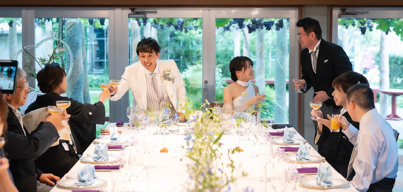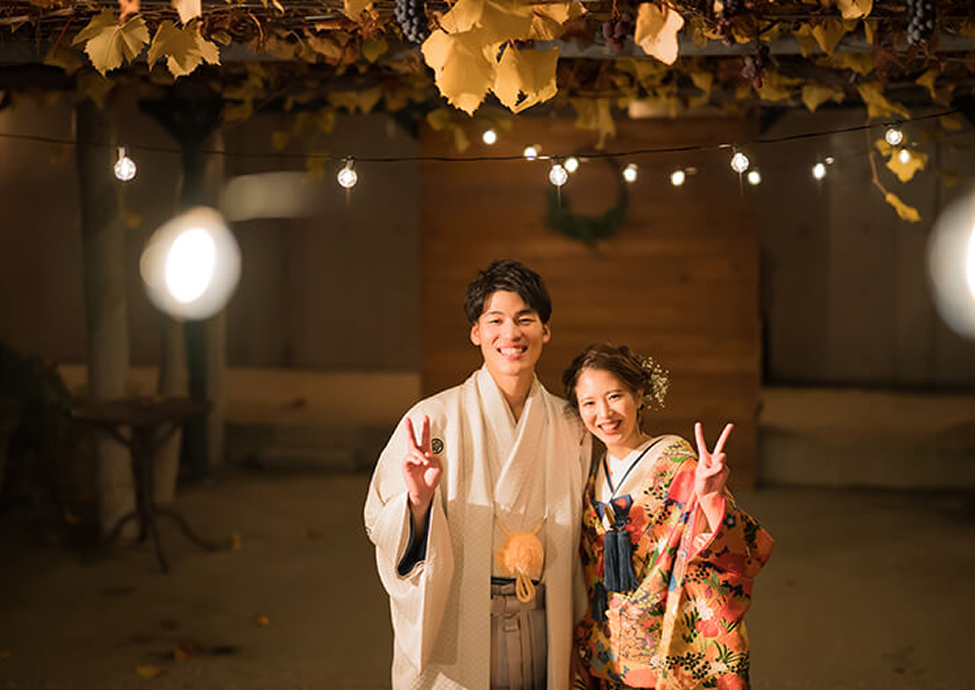 ぶどうの森ではお2人の希望に合わせ挙式、パーティ時間を自由に設定いただけます。季節によって異なる陽光を演出してお好みの空間をつくりあげましょう。